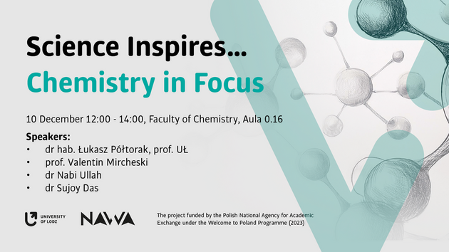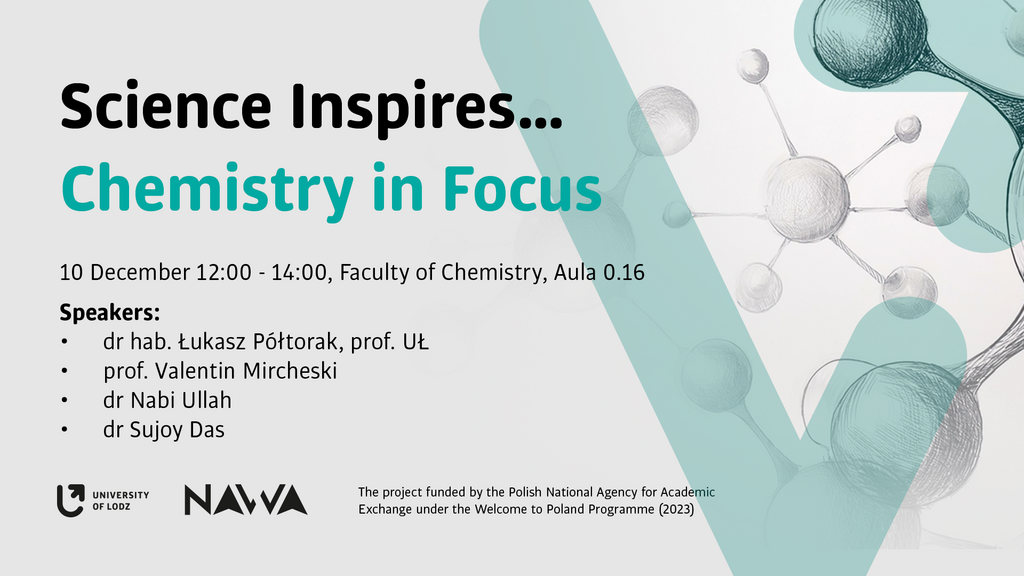 Podczas prelekcji wystąpią naukowcy reprezentujący różne obszary badań chemicznych. Będziemy gościć 3 badaczy z zagranicy oraz 1 z Polski. To doskonała okazja, aby poznać najnowsze osiągnięcia w dziedzinie chemii oraz wymienić się doświadczeniami z naukowcami z różnych krajów. Wstęp wolny, dlatego serdecznie zapraszamy wszystkich zainteresowanych.