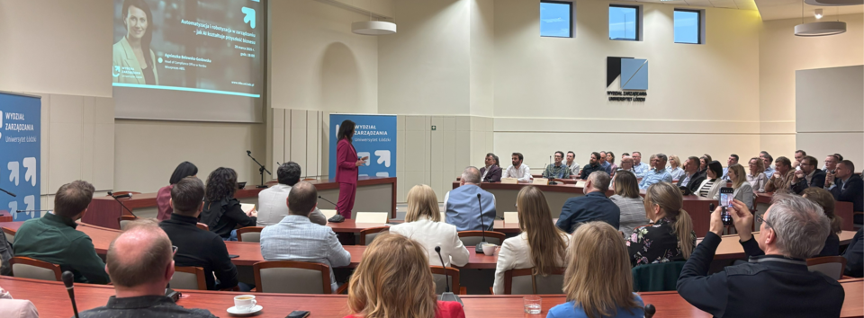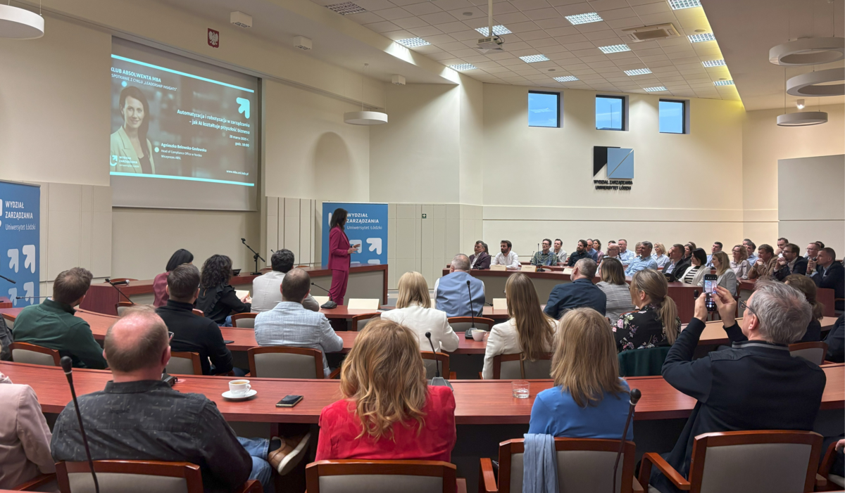 28 marca 2025 r. odbyło się spotkanie z cyklu „Leadership Insights”, organizowane dla członków Klubu Absolwenta MBA Wydziału Zarządzania UŁ. Wydarzenie zgromadziło liczne grono absolwentów, którzy mieli okazję wymienić się doświadczeniami, zdobyć nową wiedzę oraz nawiązać wartościowe relacje biznesowe. Gościem specjalnym była Agnieszka Belowska-Gosławska, Head of Compliance Office w Nordea i Wiceprezes ABSL, która podzieliła się swoimi doświadczeniami w zakresie automatyzacji i robotyzacji w zarządzaniu.