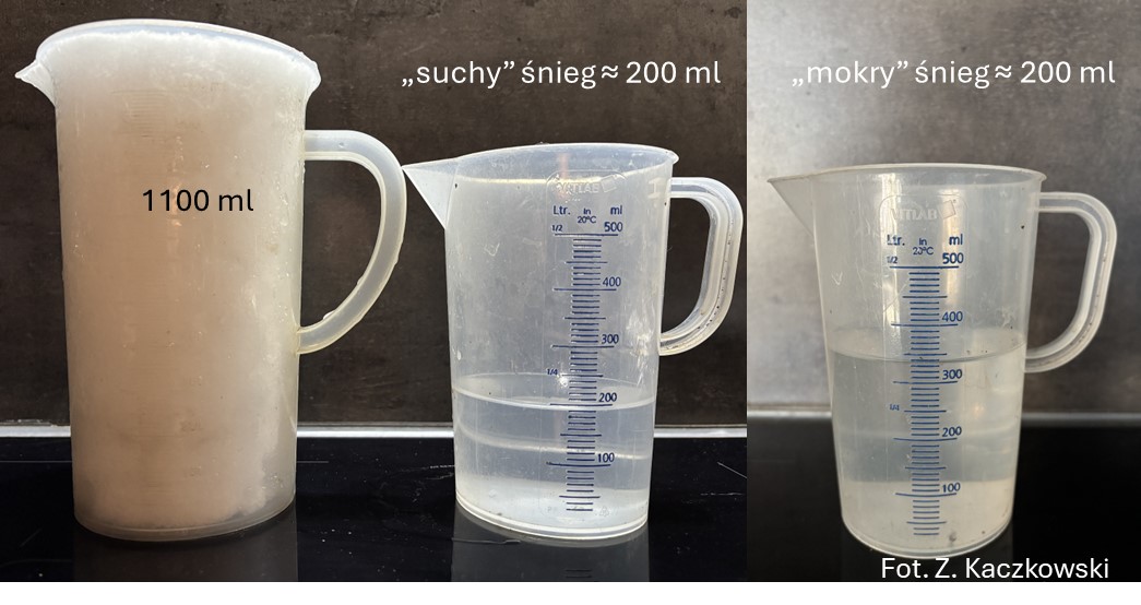 Fot. 2. Porównanie ilości wody wytapiającej się z około 1100 ml „suchego” i „mokrego” śniegu