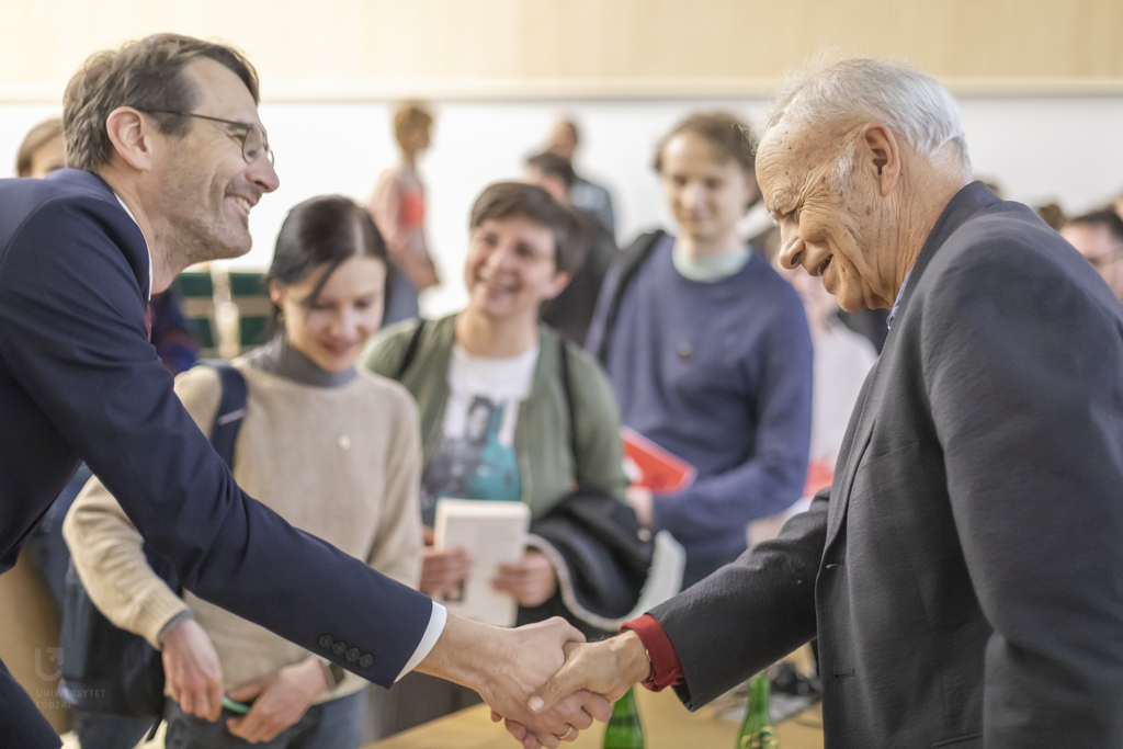To dopiero pierwszy Wykład Rektorski w kadencji 2025-2028 (nasza uczelnia organizuje je od 2010 roku). Rektor UŁ prof. dr hab. Rafał Matera, witając gościa, podkreślił jednak, że – biorąc pod uwagę ciężar gatunkowy myśli, problematyki badawczej i cały dorobek prof. Petera Singera – warto było poczekać nieco dłużej na to spotkanie. Zwłaszcza w roku 80-lecia naszej uczelni.