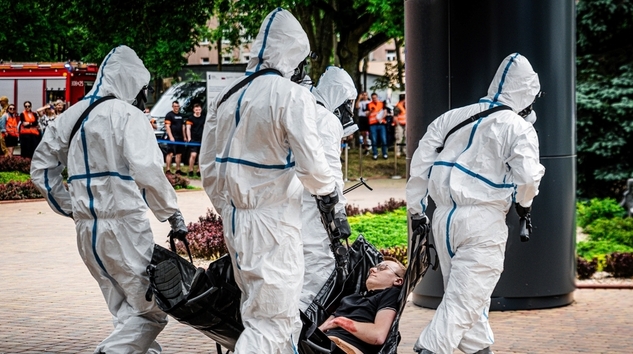 Scenariusz obejmował uwolnienie z plecaka nieznanej, szkodliwej substancji w trakcie konferencji, podczas której w role słuchaczy wcielili się kursanci szkoły policyjnej. W związku z tą sytuacją pracownicy Centrum dokonali ewakuacji oraz wstępnej dekontaminacji skażonych osób, czyli usunięcia szkodliwej substancji z ich skóry oraz ubrania.