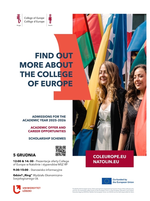 - 12:00 & 14:00 – Prezentacje oferty College of Europe w Natolinie i stypendiów MSZ RP