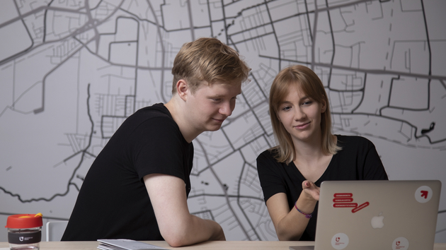 Dwójka studentów UŁ siedząca przy komputerze