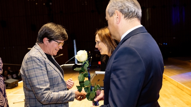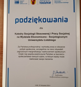 Dr Małgorzta Potoczna, a representative of the Department of Applied Sociology and Social Work, University of Lodz received special thanks for her work for excluded people and creating a society of equal opportunities by the Marshal of the Lodz Voivodeship, Joanna Skrzydlewska.