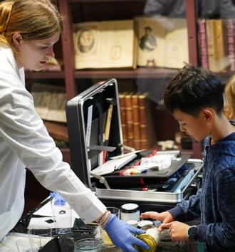 In the "Alchemist's Room" there were continuous demonstrations using the equipment of a forensic suitcase. Selected forensic techniques used to secure traces during examination were also presented. In addition, it was possible to observe the disclosure and securing of fingerprints using fingerprint powders and ink pads.