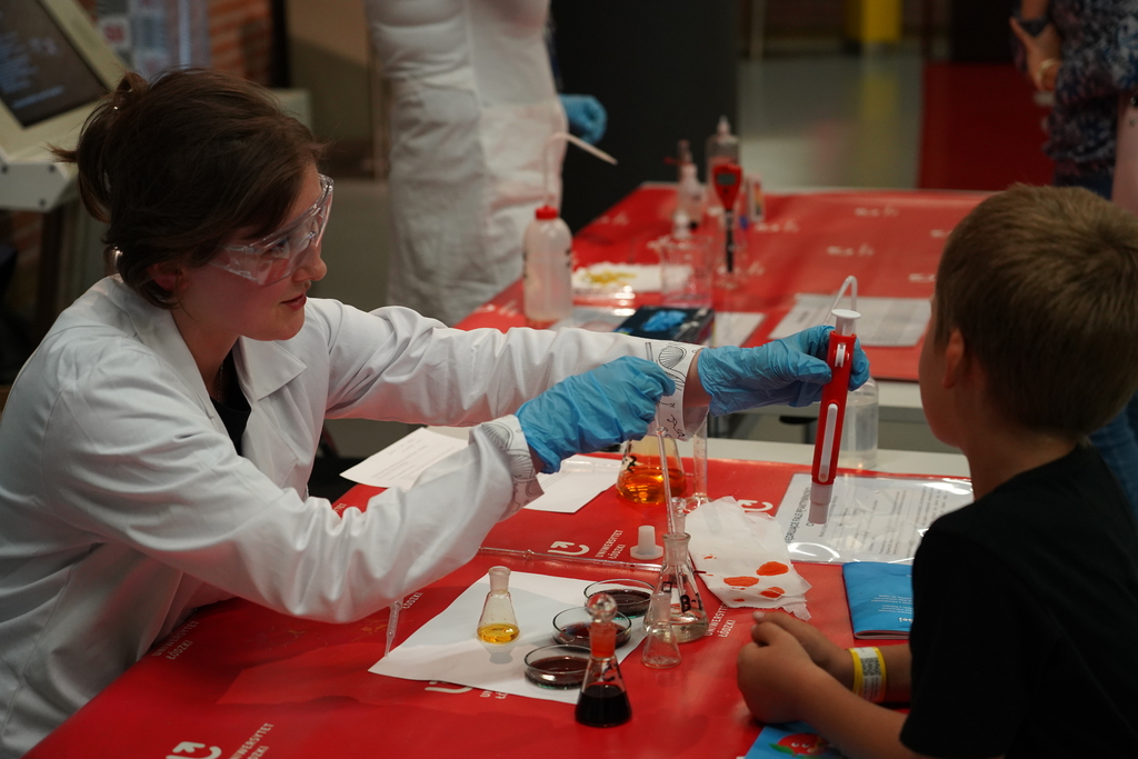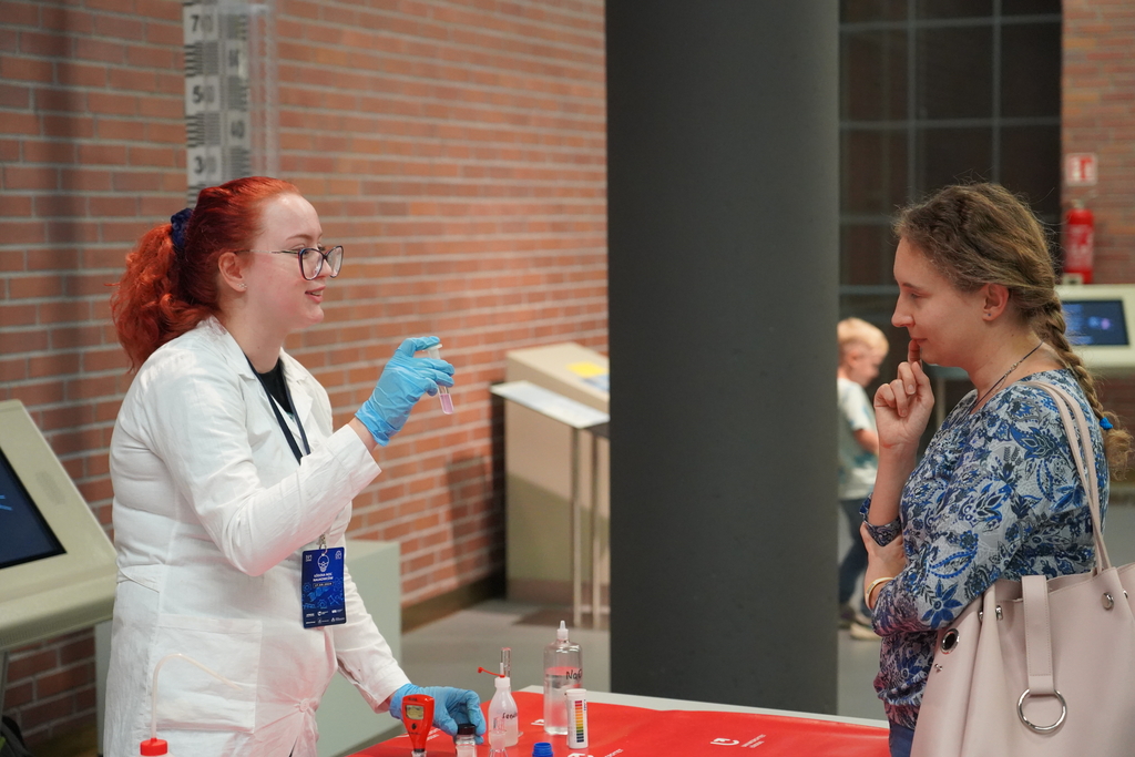 At the exhibition in the pressure section (Chemical Zone) workshops and shows entitled "Colours of Chemistry" prepared by Dr Paweł Urbaniak together with the "Orbital" Student Science Club for Chemistry of the University of Lodz were held. The shows included simple and interesting chemical experiments, supplementing and extending "school" knowledge of chemistry. You could also learn what "masking" in chemistry is.