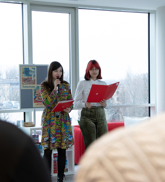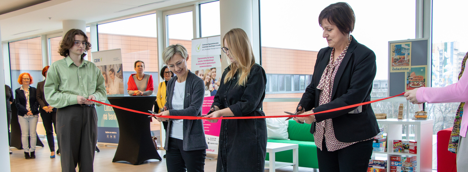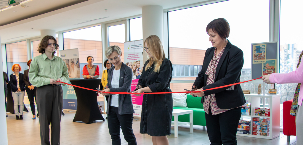The zone was opened with a symbolic red ribbon cutting by the ItaliAMO supervisor, Dr Katarzyna Kowalik, and representatives of the faculty authorities: Prof. Magdalena Pietrzak and Prof. Dorota Kaczmarek. After the official part, the event participants could get familiar with the zone's offer and at the end try some refreshments.