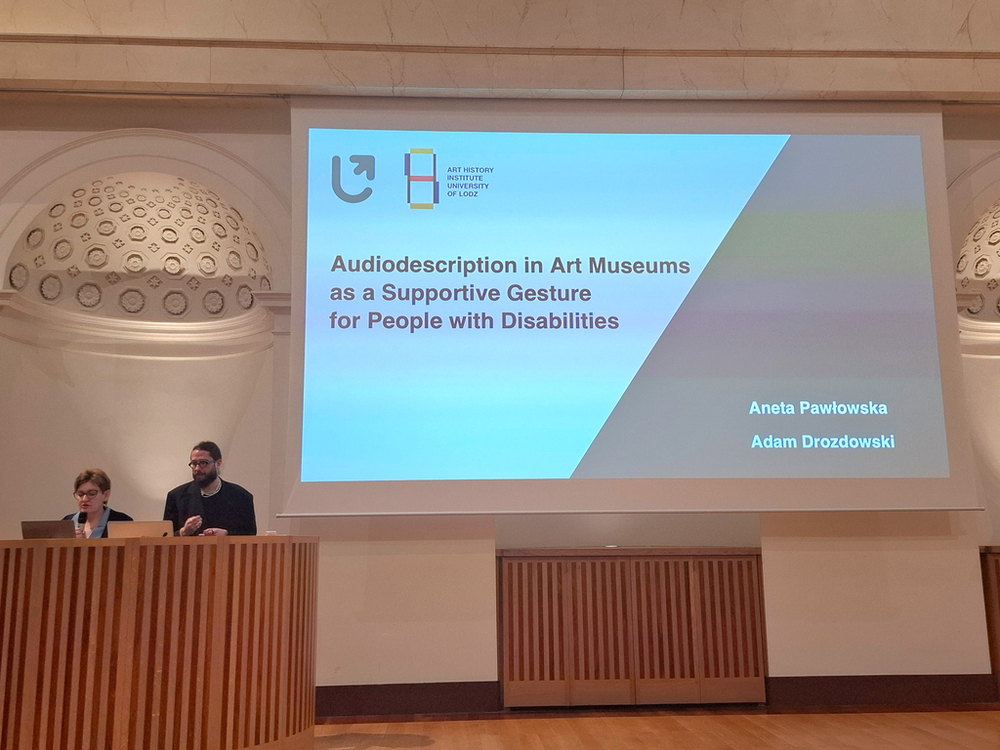 Their presentation focused on audio description as a tool (but also a curatorial gesture) that supports people with visual impairments and serves to build inclusiveness in cultural institutions. The speakers shared their experiences from implementing research projects and examples of good practices that can serve as inspiration for other museums and galleries. Their presentation was met with great interest and was an important voice in the discussion about the accessibility of art.