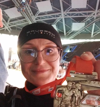 - mgr Renata Olender-Bartosik from the Project Support Centre, who completed the half marathon distance in the first shift in a time of 01:44:34