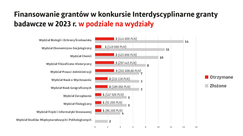 Faculty of Economics and Sociology – 11 submitted grants, grants obtained: 1, the total amount received: PLN 149,000.