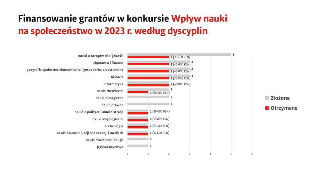 economics and finance – 3 submitted grants, grants obtained: 2, the total amount received: PLN 40, 000;