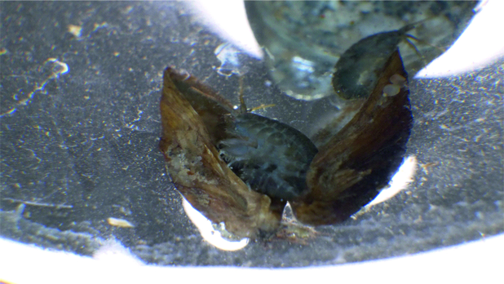 Inwazyjny kiełż, Dikerogammarus villosus w muszlach inwazyjnego małża, racicznicy (fot. Luca Desiderato)Inwazyjny kiełż, Dikerogammarus villosus w muszlach inwazyjnego małża, racicznicy (fot. Luca Desiderato)