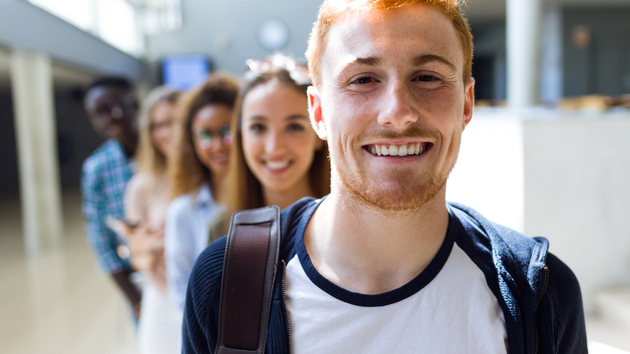 kolorowe zdjęcie przedstawiające grupę uśmiechniętych studentów patrzących prostu w obiektyw